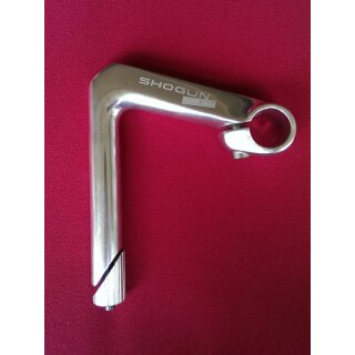 schöner und sehr seltener Rennradvorbaugeschmiedetes Aluminiumfür 1" Gabeln (d.h. 22,2mm Vorbauschaft)25,4mm Lenkerklemmung120mm Längeca. -10° Steigungsilber poliertNEU, minimalste Lagerspuren möglich